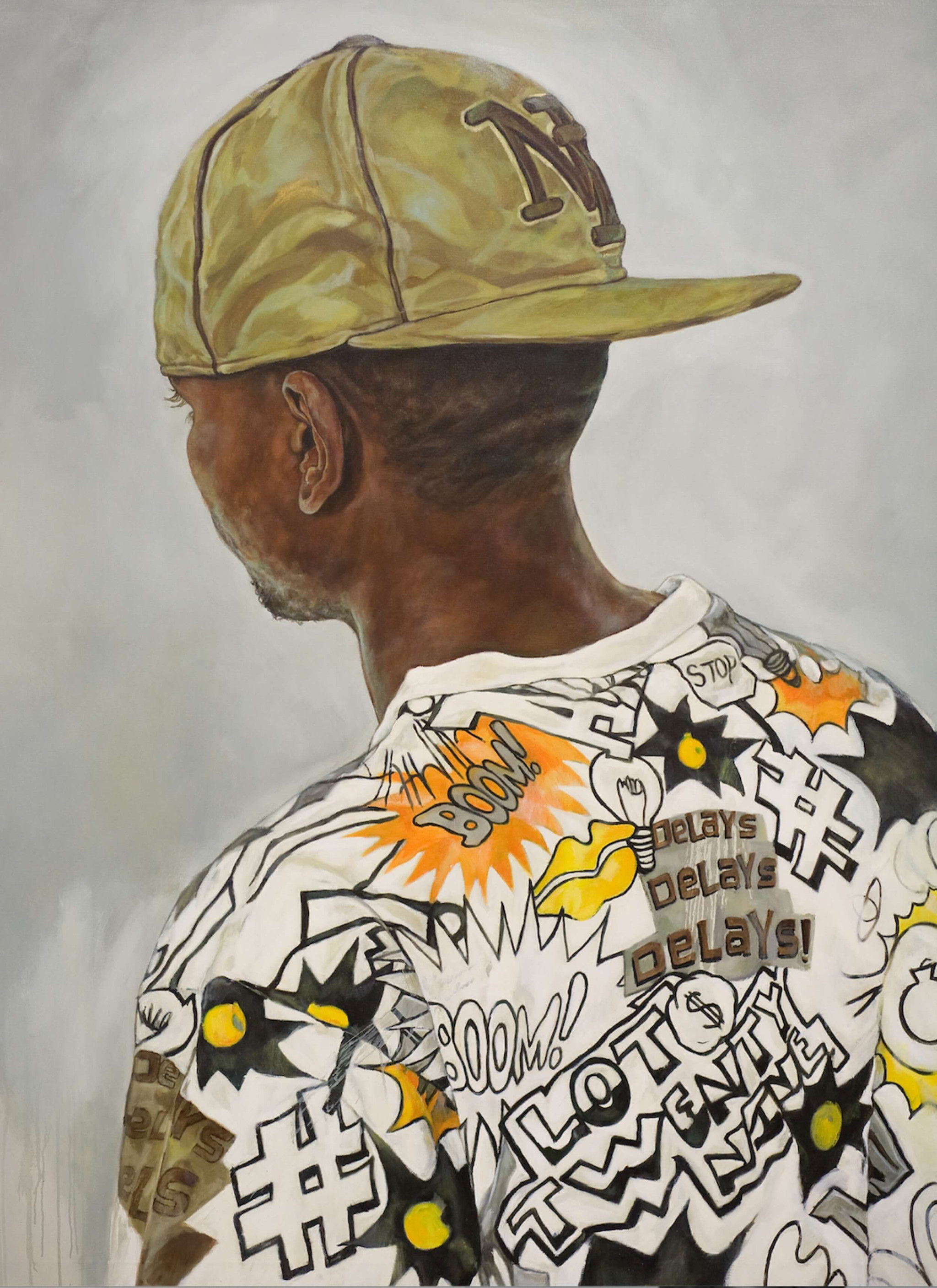 For Walker, the series considers “stereotyping and how people are judged, looked upon, or perceived through their clothing.” She deliberately obscures the faces of her sitters. Instead, she draws attention to the backs of their heads and their dressed and styled bodies. She asks us to engage in active viewing and reckon with our own perceptions and prejudices, encouraging us to be aware and critical of our own gaze.